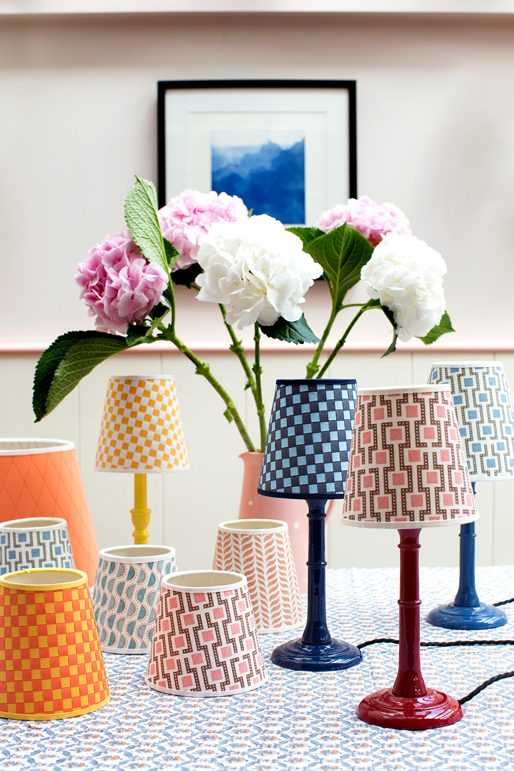 Having always been passionate about design, pattern and colour and frustrated with not being able to find lampshades she really loved, Rosi began making her own collection of paper lampshades from her kitchen table.
